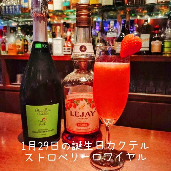 久しぶりに、1月29日の誕生日カクテルをご紹介します。本日のおすすめは「ストロベリー・ロワイヤル」。酒言葉は、「目標に向かって頑張るムードメーカー」です。当店ではいま、フレッシュいちごを使った特別なカクテルを提供中。今回のカクテルも新鮮ないちごで作っています。いちごの甘酸っぱい香りとスパークリングワインが絶妙に調和し、まるで春の訪れを感じさせる一杯になっています。誕生日を迎える方はもちろん、特別な夜に是非お試しください。スタッフ一同、皆様のご来店を心よりお待ちしております。いつもの日常にちょっとした贅沢を。美しい一杯を楽しみに、ぜひお越しください。特別な一日をさらに輝かせる素敵な時間をお届けします。