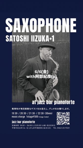 🎷【本日 6月6日(金)出演アーティスト】🎹Sax:飯塚 知(さとる)