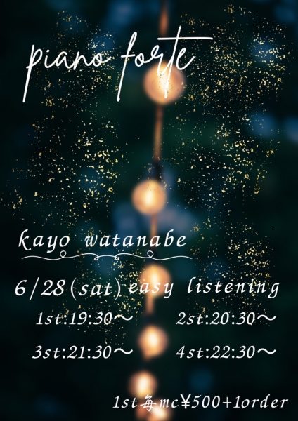 🌟🎹✨6/28(土)は、湘南を拠点に活躍する渡辺香世さんによる「easy listening」ライブをお届けします!