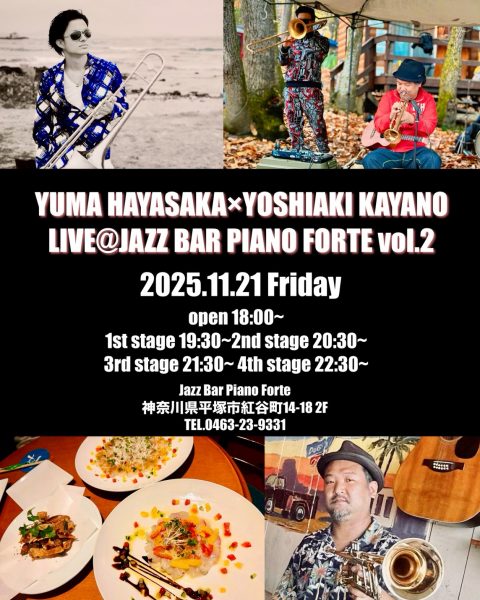 今夜11/21(金)は、Yuma Hayasaka × Yoshiaki KayanoLIVE @ Jazz Bar Pianoforte vol.2‼️